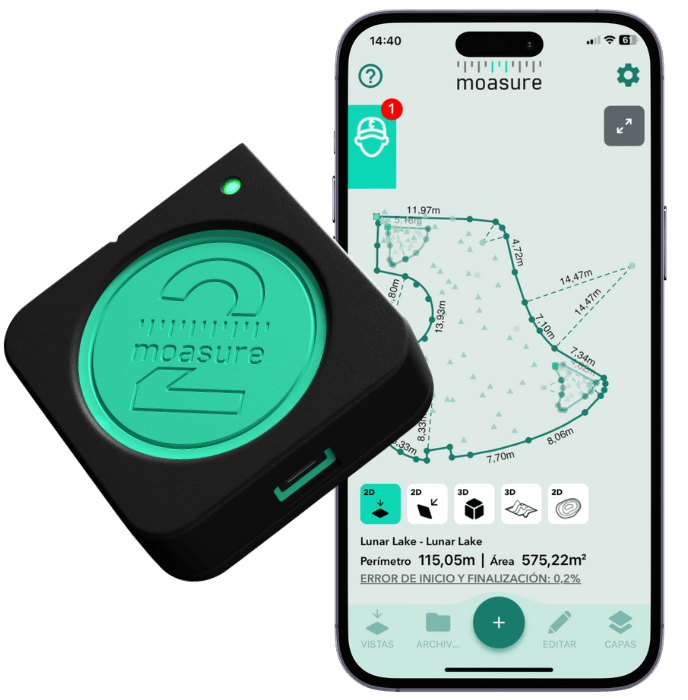 El uso de herramientas tradicionales a menudo da lugar a errores y suposiciones cuando se trata de medir formas complejas e irregulares. En cambio, la tecnología patentada de Moasure utiliza la medición basada en el movimiento para simplificar y agilizar tu flujo de trabajo, sin necesidad de GPS o láser.