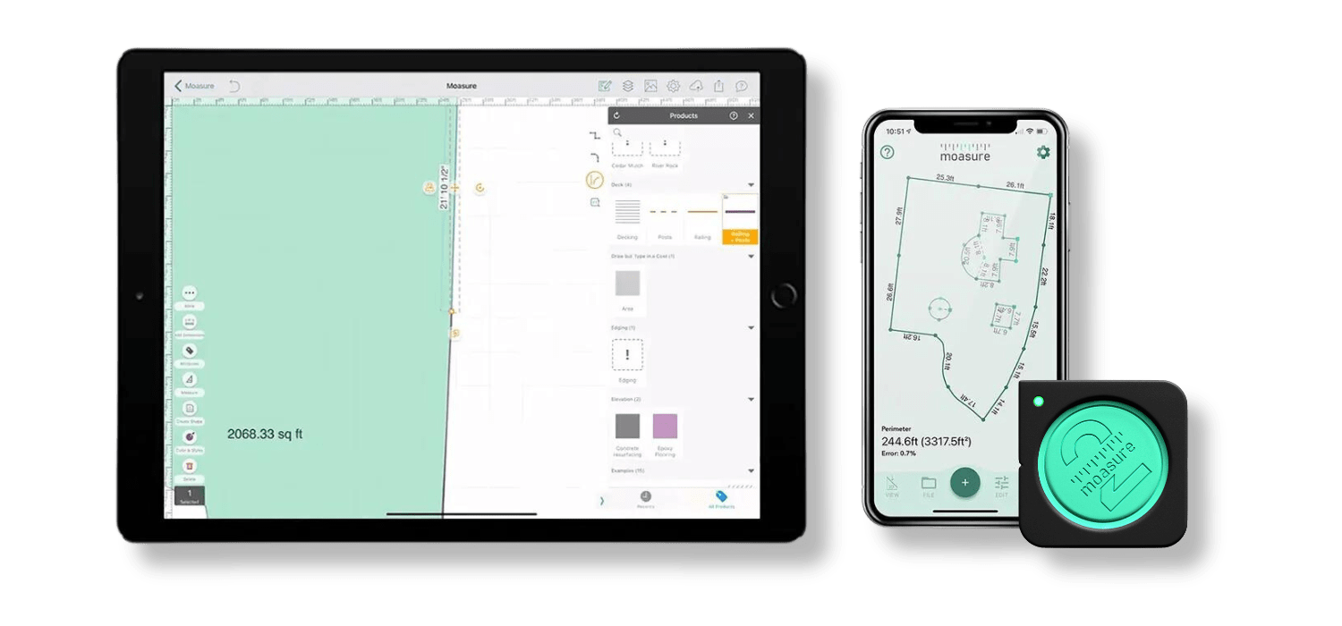 Mide sin esfuerzo durante las visitas a los clientes (en interiores y exteriores) con Moasure®. Transfiere las mediciones de forma instantánea a ArcSite con un solo clic. Con Moasure® puedes medir líneas, ángulos, arcos, áreas y mucho más con una precisión probada. Una vez importado a ArcSite, eliminarás la posibilidad de errores de medición y fijación de precios.