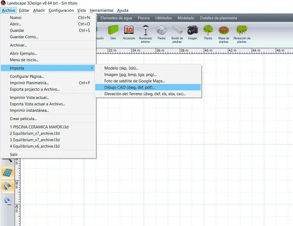 Gracias a la compatibilidad de Landscape3Design con CAD, podrás importar las superficies obtenidas con Moasure de manera fácil y rápida en formato DXF. De este modo, dispondrás de la planimetría para iniciar el proyecto.